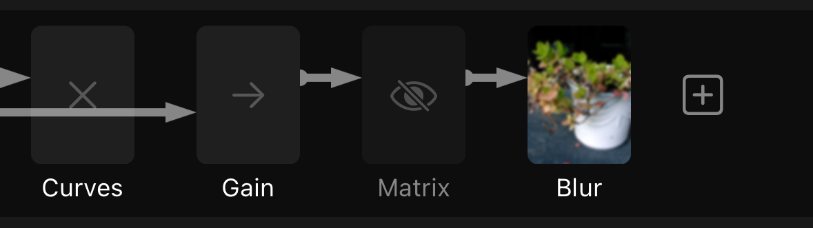 - The arrow means, this filter doesn't do anything and therefore isn't rendered to avoid unnecessary processing. This is the case for example with a blur filter with the amount set to zero or a brightness/contrast filter with all parameters at neutral position